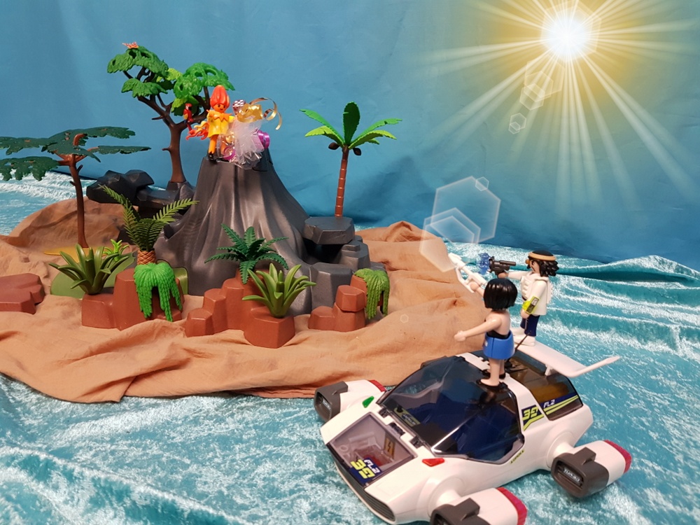 Nun, da die Wassertemperatur wirklich herrlich ist, kann ich hier jetzt ungestört baden. Leider sind wir hier ja nicht im Urlaub, und so geht es nach drei Tagen weiter. Wir folgen weiter der australischen Küste, dann überqueren wir die indonesische Inselwelt. Dabei sehen wir auch den berüchtigten Vulkan Tambora, einer der höchsten Gipfel des indonesischen Archipels. Als dieser 1815 ausbrach tötete er mindestens 71.000 Menschen auf Sumbawa und Lombok, hiervon 11.000 bis 12.000 direkt durch die Eruption. Das durch die Eruption ausgeworfene Material bewirkte globale Klimaveränderungen, die aufgrund der Auswirkungen auf das nordamerikanische und europäische Wetter dem Jahr 1816 die Bezeichnung „Jahr ohne Sommer“ einbrachten. In Teilen der nördlichen Hemisphäre kam es durch Missernten und eine erhöhte Sterblichkeit unter Nutztieren zur schlimmsten Hungersnot des 19. Jahrhunderts. Ob dieser Vulkan wohl Flammbadas Heimat ist? Das würde jedenfalls ihre Bösartigkeit erklären.