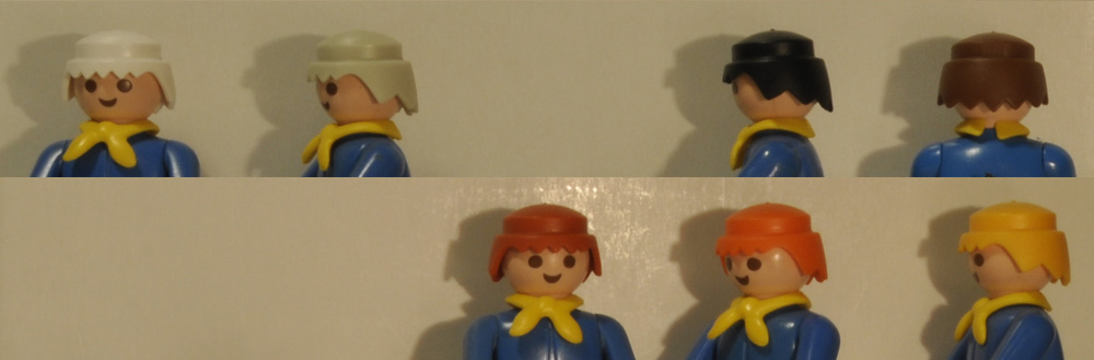 Als ich anfing mit Playmo gabe es die Zackenfrisur in drei Farben und wenig später die Lockenfrisur in schwarz, das war es dann aber auch schon - ob der unmassen der Frisuren sehe ich hier ein neues Sammelgebiet für mich persönlich.