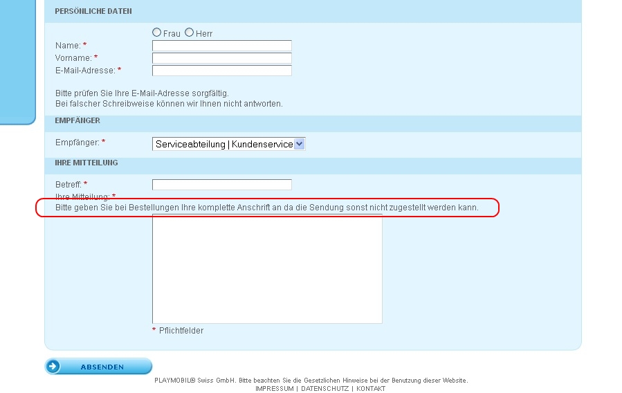 . Bei Playmobil kann man denen ja unter "Kontakt" eine Mail zukommen lassen. Folgender Satz (unten rot umrandet) hat mich dann hellhörig werden lassen.