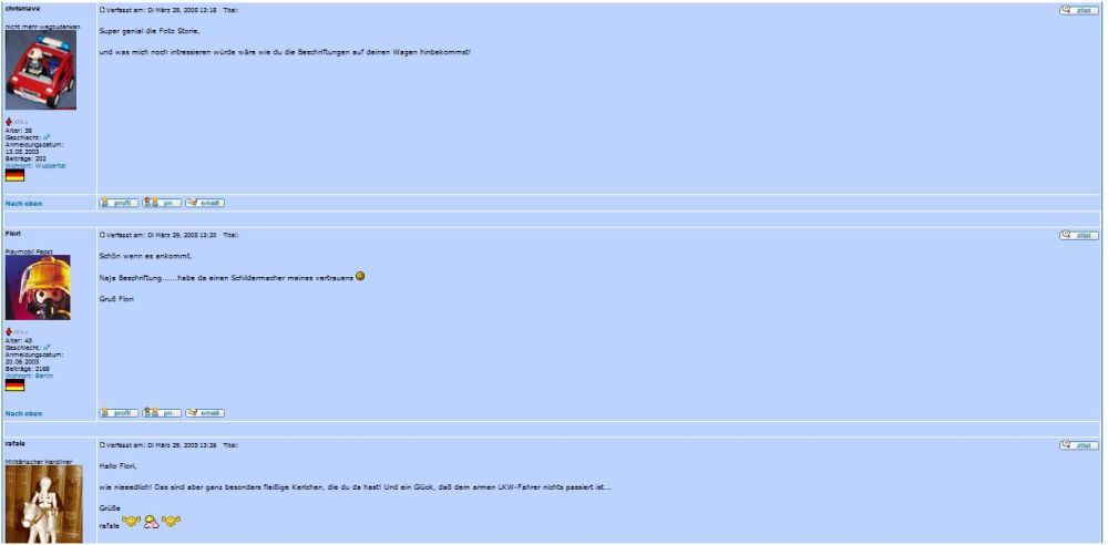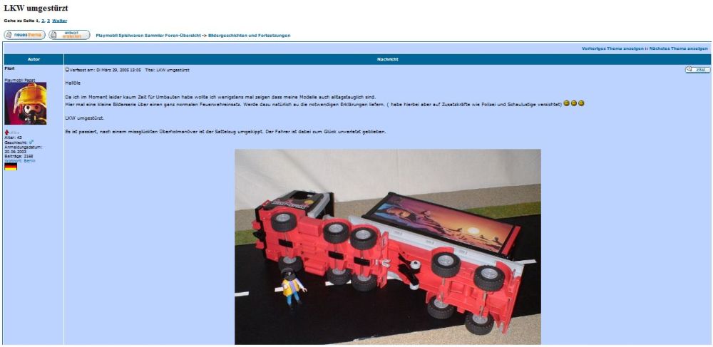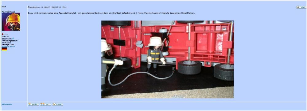 Mod.Edit: Thread verschoben. Das ist keine Playmobil-Historie, höchstens Forums-»Historie«. Weil nur Feuerwehr mit drin ist, habe ich es zu »Blaulicht & Co.« verschoben. VG zugpferdchen