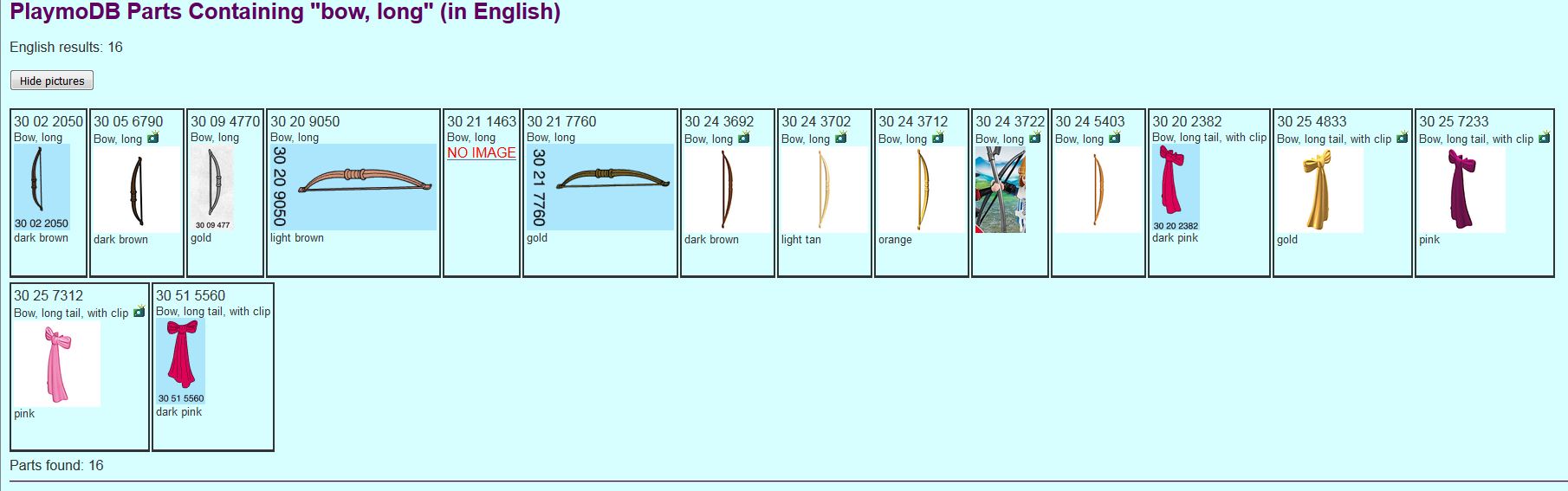 Diese habe ich mit dem Stichwort "Bow, long" nochmal verfeinert