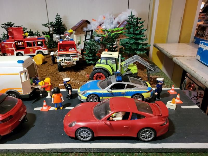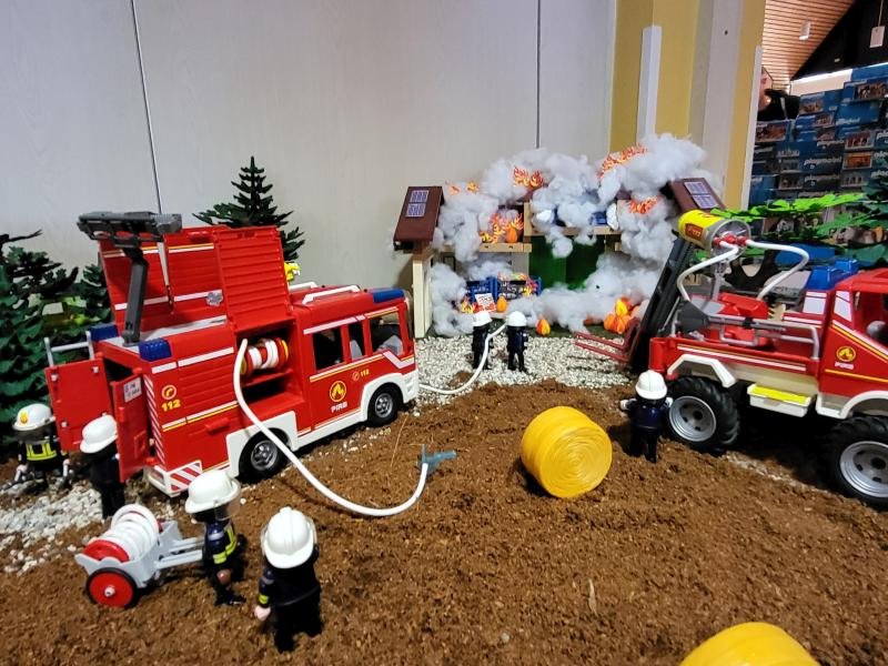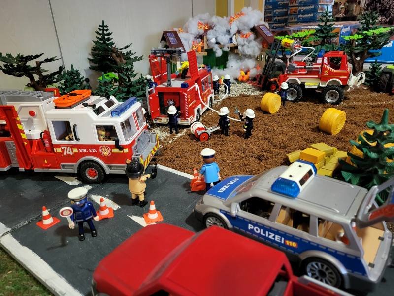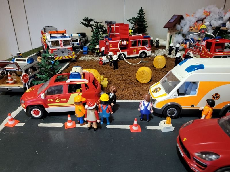 Hier ist einiges los! Es brennt - und alle Einsatzfahrzeuge spielen eine Rolle!